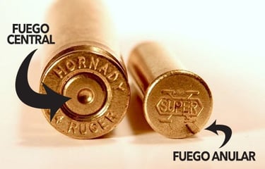 En el sistema de fuego central el fulminante está en el centro de la base del cartucho. El percutor golpea ese punto central.